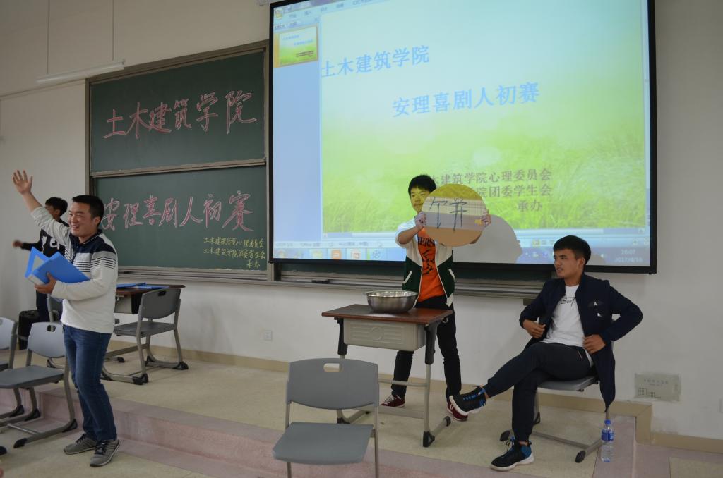 为了丰富校园文化生活,发现生活中的乐趣。4月16日下午,土木建筑学院在山南新区明理南306教室举办“安理喜剧人”活动。学院2016级15个班级参加了此次比赛,院心理工作站老师、学生会主席、院心联学生干部担任评委。