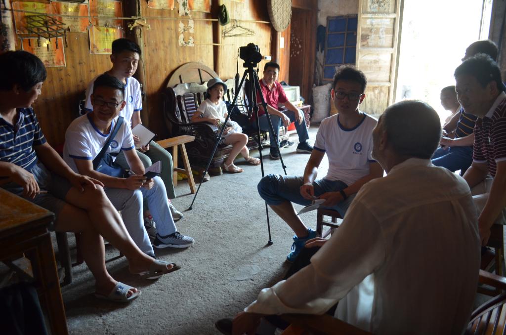 文南词戏曲剧流行于安徽东至、宿松等地。实践团在前期做了充分的准备,直奔文南词最早的重要发源地池州东至县梅塘村。刚一进村实践团成员们就被阵阵质朴醇厚、铿锵有力,时而高亢昂扬,时而低回徐转的文南词曲音所吸引,沿着声音,实践团找到了文南词最后的艺人李正福老人。通过采访和交流,实践团了解到文南词的发展和传承不容乐观,基本上算是达到“后继无人”的状态。在经过李老的允许下,实践团采集了一些李老唱文南词的视频、音频等宝贵的一手资料。实践团有幸采访到东至县梅塘文南词文艺演出团的团长李惠风,李团长向实践队员们展示文南词演出时的道具、帽盔、服装供队员们参观调研。除此之外,李团长向实践团提供了最珍贵的文南词曲谱,为实践团的调研提供了宝贵的资料。