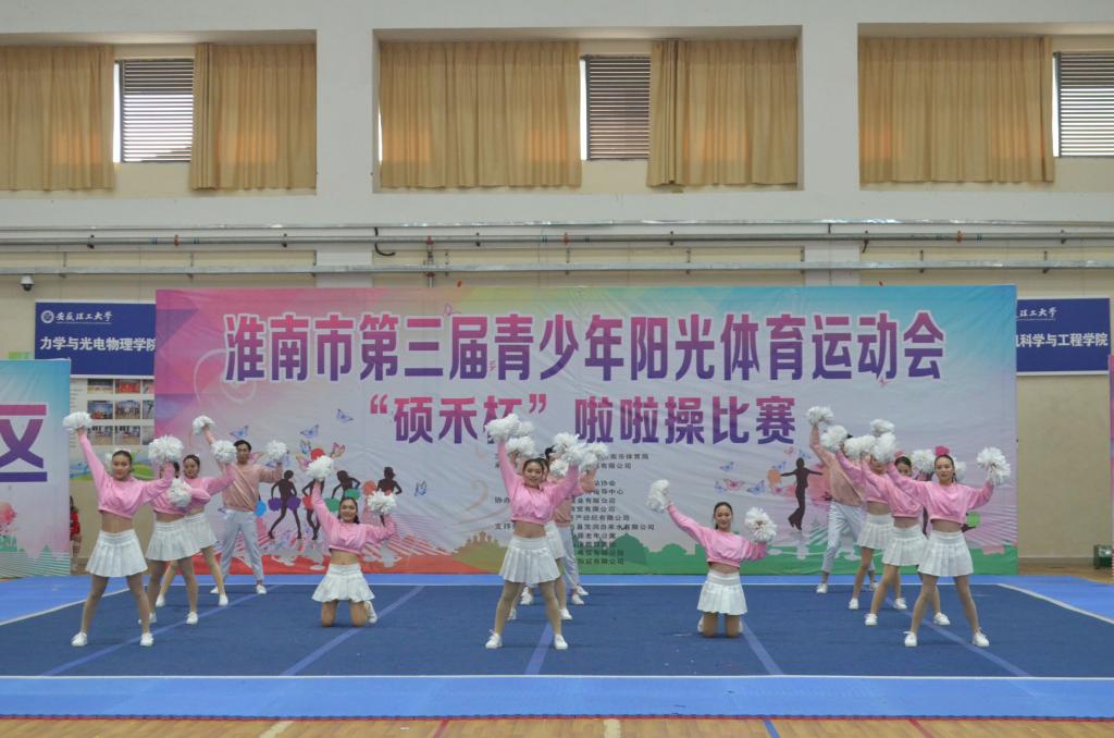 11月24日,淮南市第三届青少年阳光运动会“硕禾杯”啦啦操比赛在安徽理工大学自强体育馆隆重举行。土木建筑学院两支啦啦操队伍在此次比赛中荣获大学组花球啦啦操自选动作第二名、规定动作第四名以及团体第四名,肖琳荣获“最佳教练员”称号。