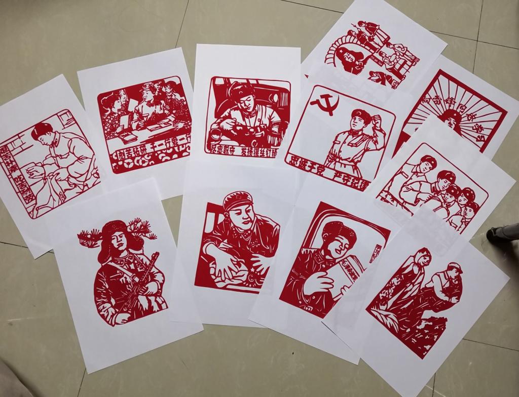 剪纸作品及视频拍摄现场(摄影:班级团支部提供)