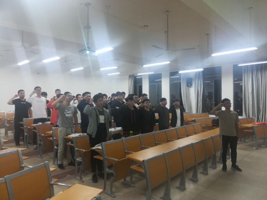 此次主题团日活动在整齐的国歌声中拉开帷幕。刚开始团支书檀贤涛带领同学们进行入团宣誓,告诫同学们不仅要在组织上入团,更要在思想上入团、行动上入团,树立正确的世界观、人生观和价值观,不忘初心,牢记使命,用实际行动践行入团誓言,用热血和汗水为团徽增光,为团旗添彩,更要牢记自己身为共青团员应尽的义务与责任。
