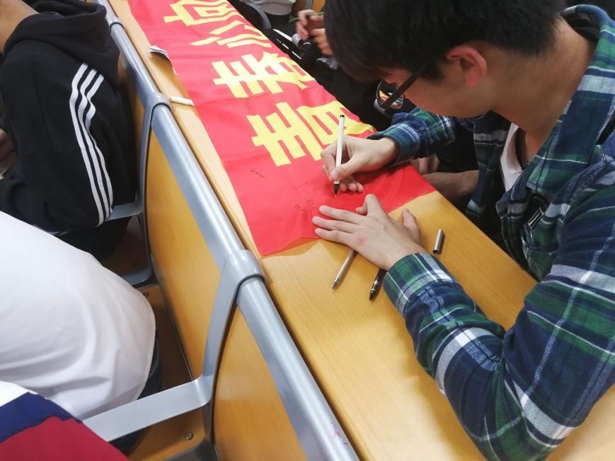 活动结束后,青年团员纷纷在宣传横幅上签下自己的名字,通过自己的行动表示对此次活动的支持。