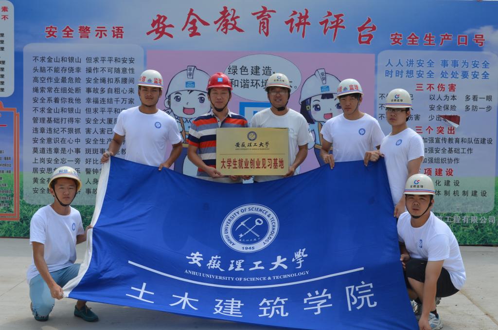 7月19日,土木建筑学院在中建四局六公司中环国际广场项目部举行“安徽理工大学大学生就业创业见习基地”授牌仪式,实践团成员与中环国际广场项目部经理华涛出席了仪式。