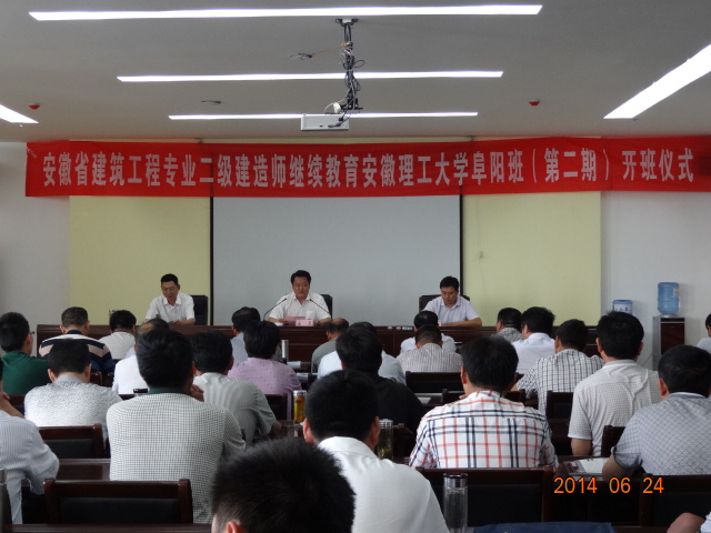 土木建筑学院高度重视承担的全省二级建造师继续教育培训工作,院长徐颖、院党委书记盛真分别出席了阜阳班第一期和第二期的开班典礼并作重要讲话,副院长吴秉江分别主持两期培训班开班典礼。