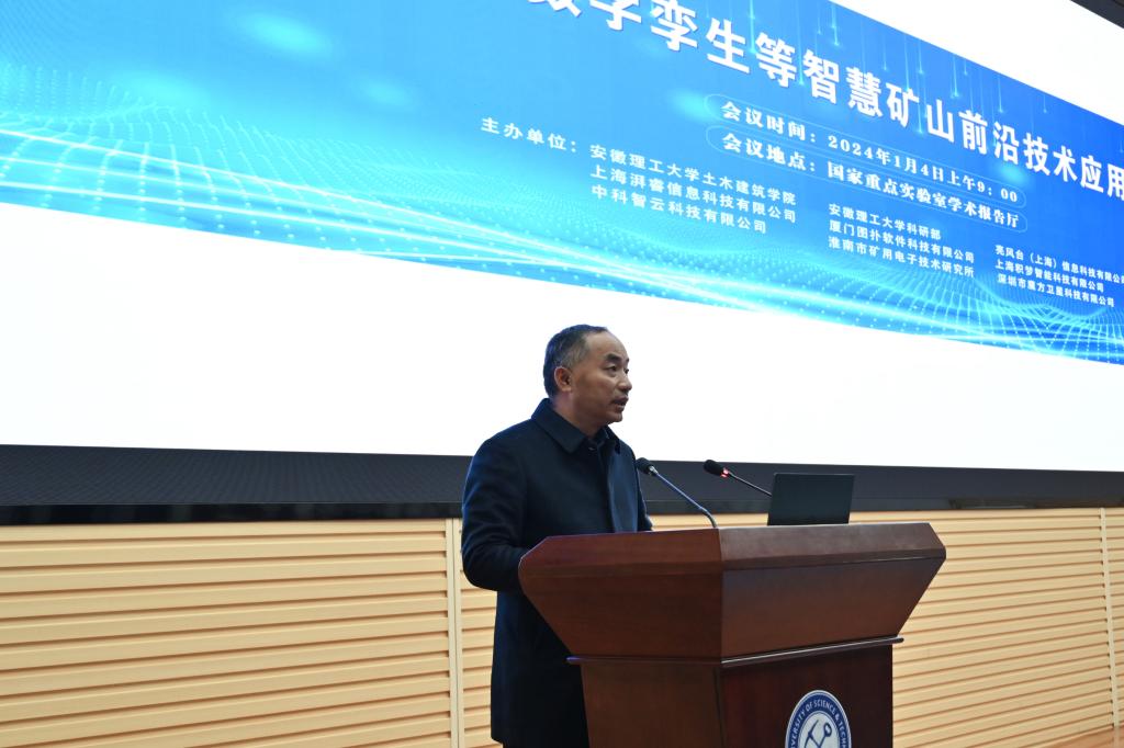 1月4日,学校联合中煤新集能源股份有限公司、淮河能源(集团)股份有限公司以及8家人工智能数字孪生等信息技术企业,成功举办“2024人工智能数字孪生等智慧矿山前沿技术应用交流会”。校党委副书记、校长袁亮院士,淮南市委常委、市委统战部部长、市政协党组副书记张劲松,淮南市委统战部副部长吴涛,淮河能源控股集团党委委员、副总经理李志红,中煤新集能源股份有限公司副总经理胡家龙等出席开幕式。会议由校党委常委、副校长张平松主持。