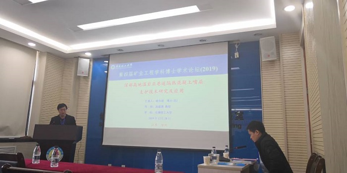 论坛上,姚韦靖以《深部高地温岩层巷道隔热混凝土喷层支护技术研究及应用》为题作学术报告。报告系统介绍了隔热混凝土在深部高地温巷道中的研究前景及意义,通过室内实验、仿真模拟及现场实践所取得的研究进展;报告内容受到参会同行的关注。论坛期间,土木建筑学院参会师生围绕论坛内容与专家学者积极互动,进行了深入的学术交流。