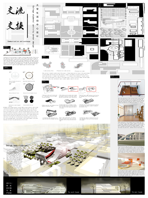 建筑11-2班 蒋成、史志强、马雯、尹琼琼 大学生活动中心设计