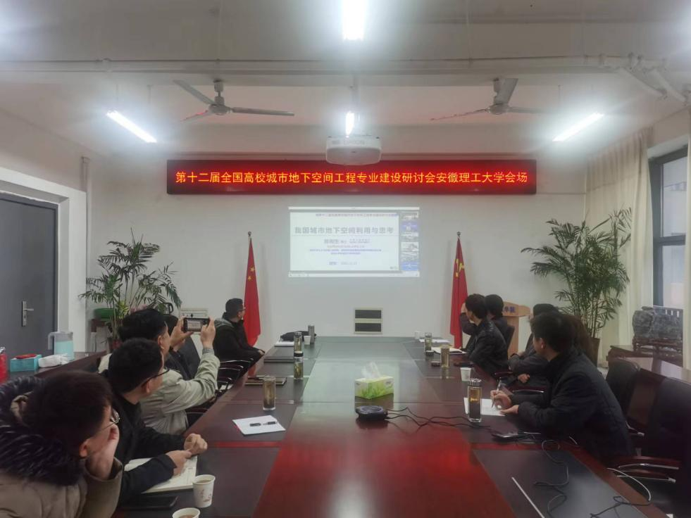 因疫情防控要求,今年全国高校城市地下空间工程专业建设研讨会采取线上线下相结合的方式进行。深圳大学、陆军工程大学、郑州大学等50余所高校以线上的形式参与了本次大会,共有17所高校的21位骨干教师做了分享报告。安徽理工大学土木建筑学院城市地下空间工程专业教研室在求是楼南231会议室设立卫星分会场,学院分管院长王长柏,城市地下空间工程教研室徐颖教授、陈海明副教授等14位老师参加了本次会议。
