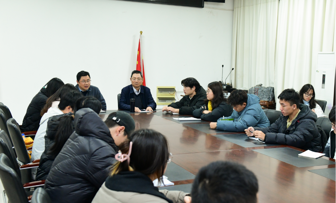 吴秉江在座谈交流中带领同学们回顾学校、学院及专业的发展历程,强调大学是人生塑造价值观与人生观的关键阶段,希望同学们主动了解对接国家战略需求,将个人理想融入国家发展需求,真正了解所学专业,在夯实专业基础的同时培养创新精神与实践能力,进而提升个人综合素质。张向林围绕校规校纪、安全教育及心理健康展开说明,重点强调遵守规章制度的必要性,并从大学学习特点及适应方面为新生提供建议。