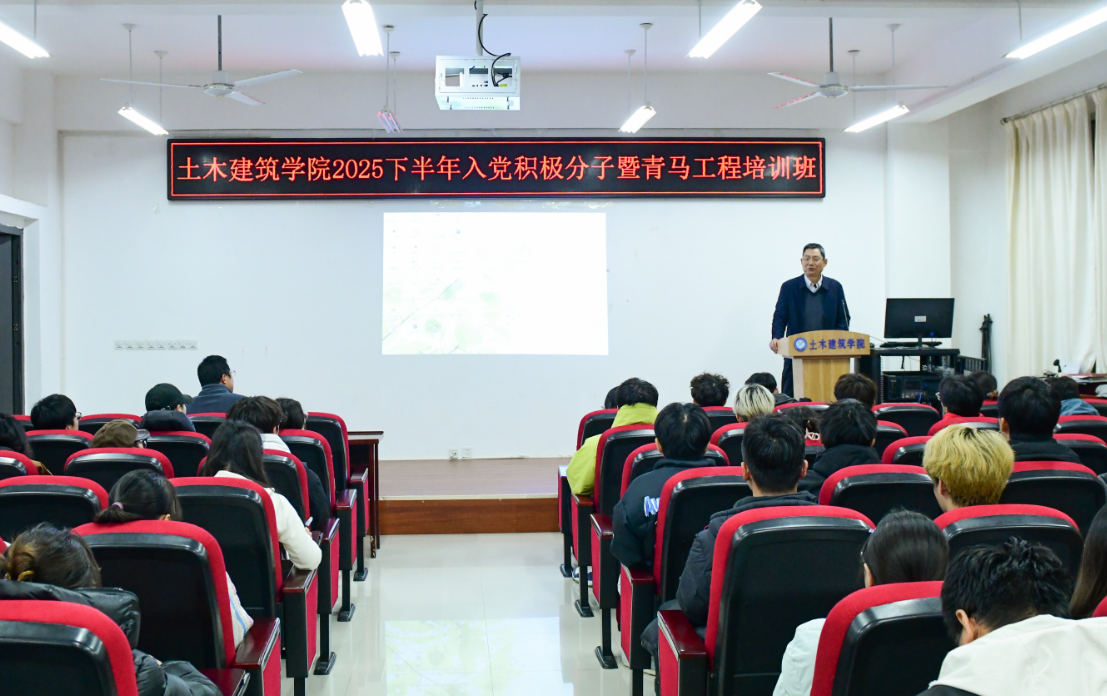 11月24日晚,在求是楼南227报告厅,土木建筑学院关工委常务副主任吴秉江受邀为学院2025年下半年入党积极分子暨“青马工程”培训班授课。