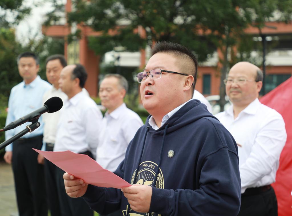 捐赠校友代表、中国煤炭科工集团建井研究院审计与法律风险部部长、土木98级崔灏致辞。“毕业20年来,作为安理人始终铭记母校的教诲,不断追求卓越。正是在母校这片沃土上,学会了勤奋、坚韧和担当。”他深情表达了对母校的感恩之情,感谢母校的用心培养和恩师的谆谆教诲,对母校取得的重大成就感到由衷自豪。他对文化石的寓意等进行了解读,并表示文化石的落成,将见证学校的变化和发展,将陪伴师弟师妹们的青春年华,将承载一代又一代安理人的记忆。校友们会一如既往地关注和支持母校建设,为母校贡献力量,祝愿母校未来更加辉煌。